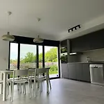 Deze villa heeft een eethoek met een waterkoker, een koelkast en een oven.